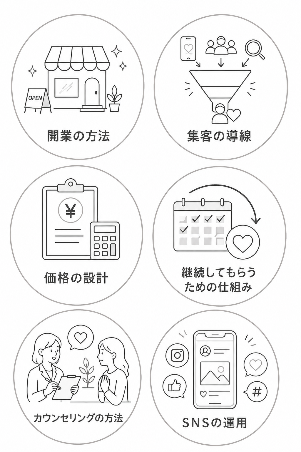 技術、理論、集客、価格設計、SNS運用——